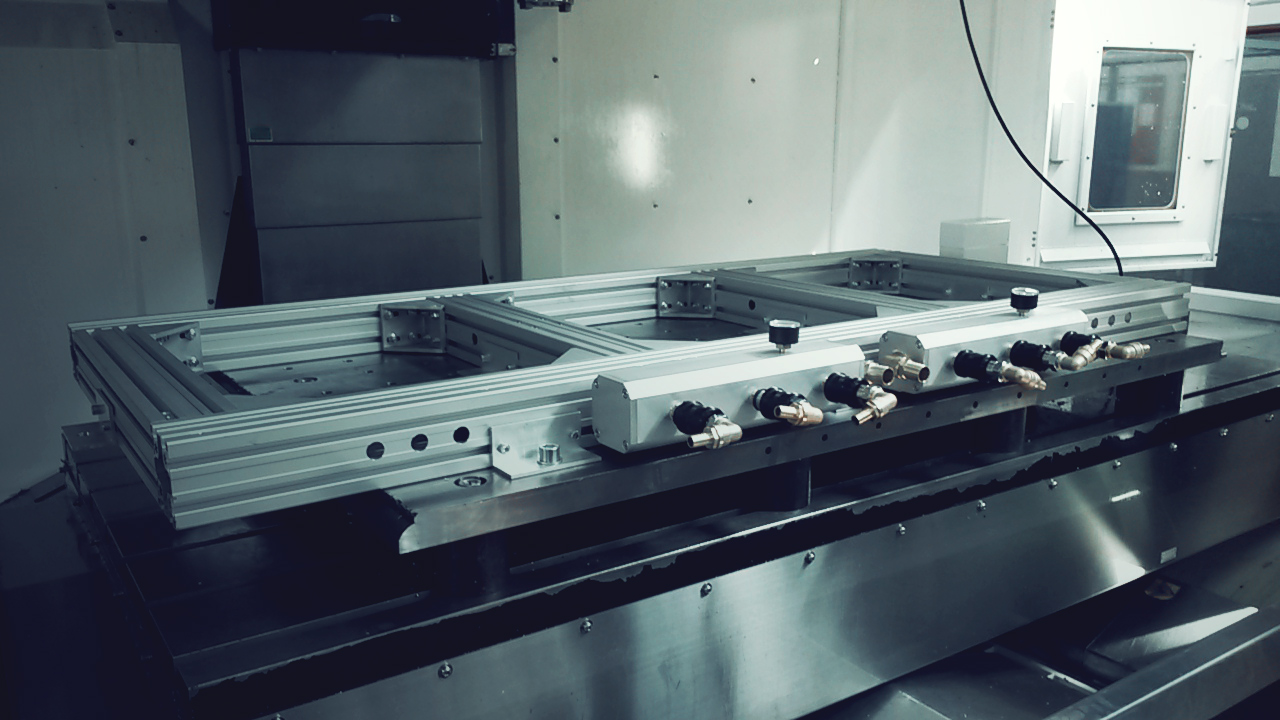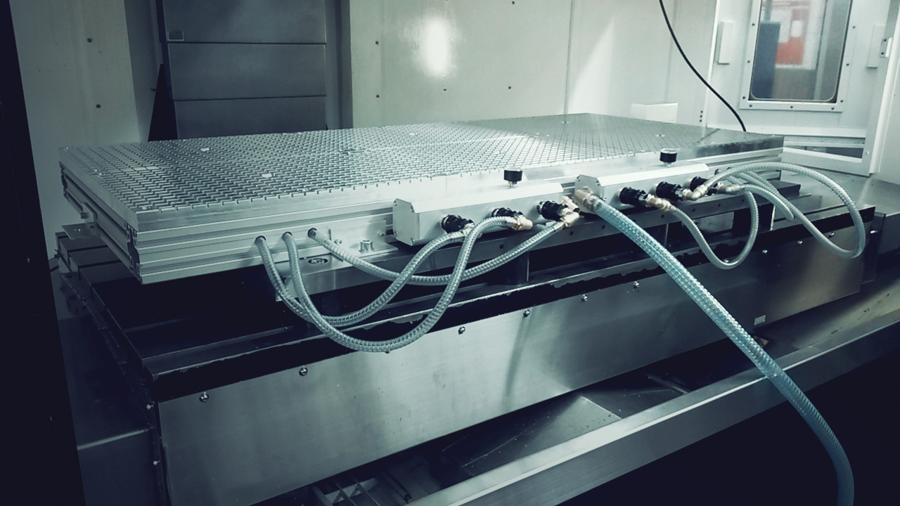 Нашей компанией был выполнен проект вакуумного стола нестандартного решения, состоящий из 6 сегментов размерами 600x400х32,5мм мм каждый, со сборно-сварной рамой, для 3-х осевого фрезерного обрабатывающего центра с ЧПУ Hartford.